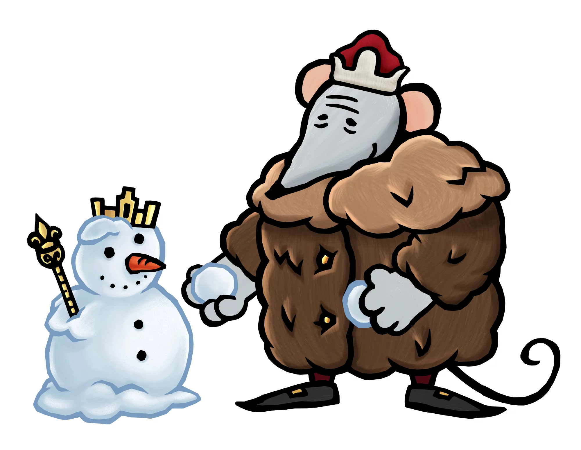 Muis en Draak trekken, met 1000 pannenkoeken onder de arm, door de sneeuw naar het grote Winterbanket van Koning. Maar wanneer ze aankomen, blijkt Koning… snotverkouden!