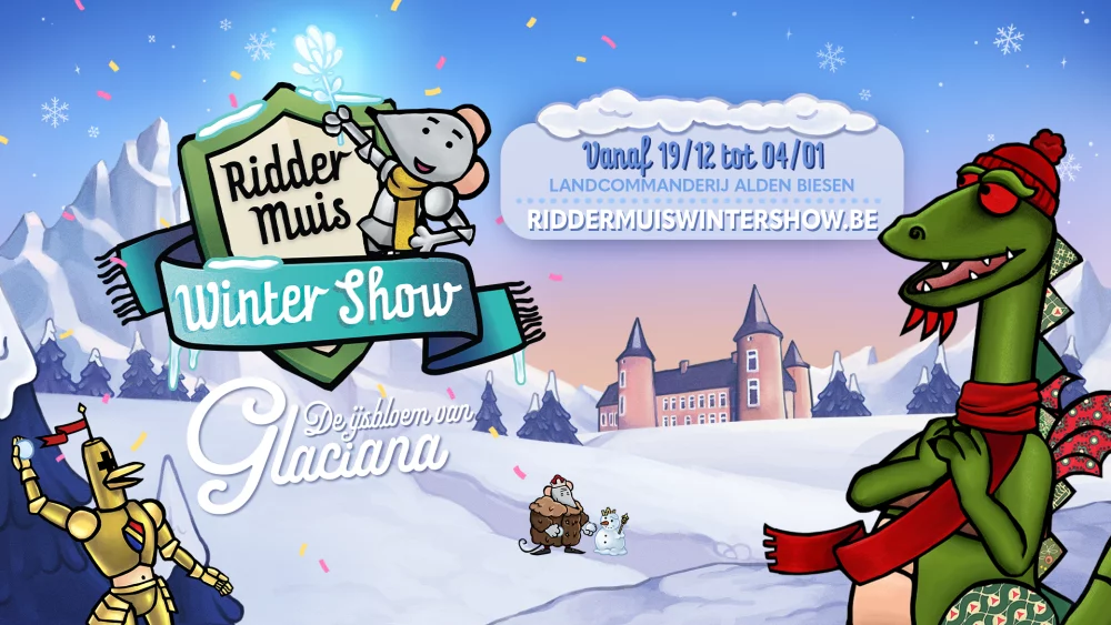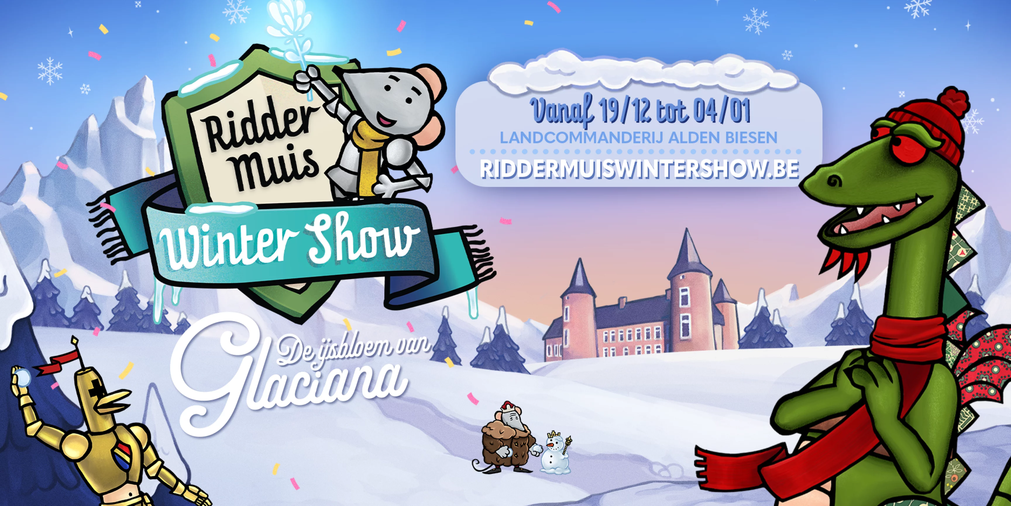 Van 20 december t.e.m. 4 januari verwelkomt Ridder Muis jou en je kleine ridder(s) in de Landcommanderij Alden Biesen te Bilzen voor een fantastische theatershow! Trek jullie beste ridderoutfits aan en ga samen met Ridder Muis en haar vrienden op zoek naar de magische ijsbloem van de mysterieuze ijsprinses Glaciana!