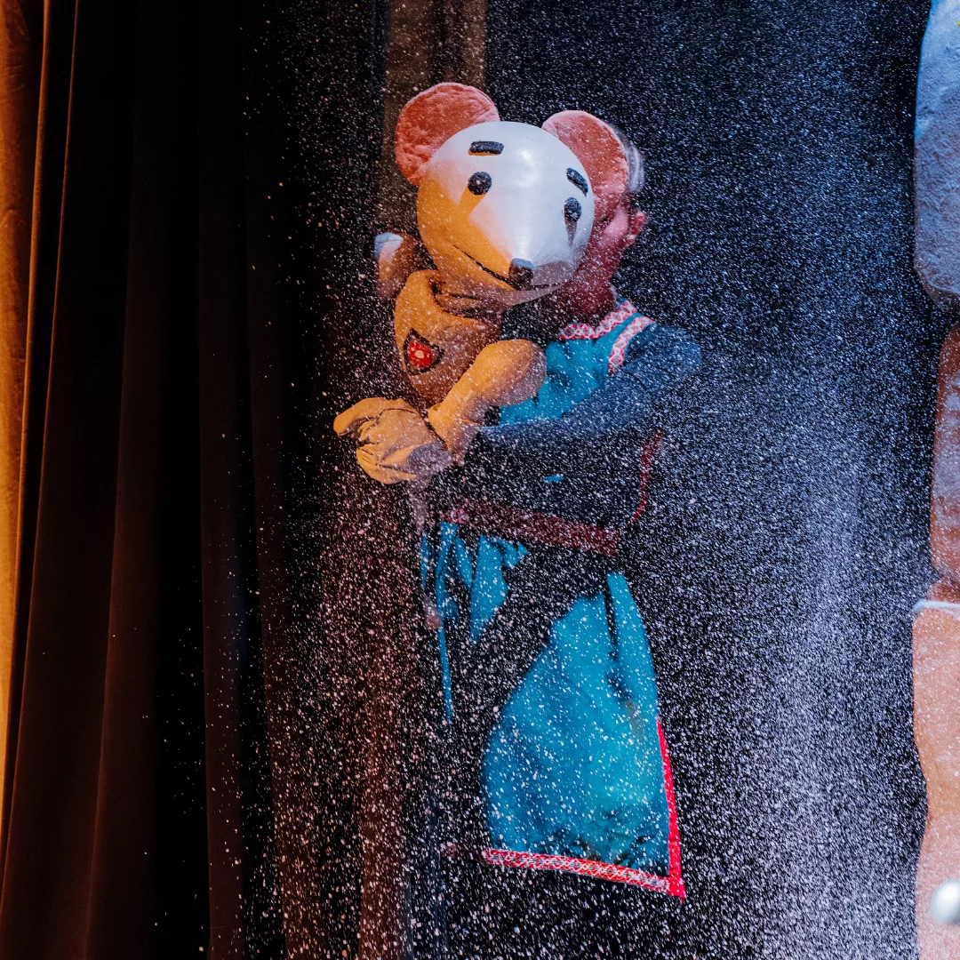 Deze ruim een uur durende theatershow combineert de doldwaze Ridder Muis-figuren met kundig poppenspel, opzwepende liedjes, mooie decors, interactieve momenten op maat van jouw kleine ridders en speciale effecten zoals sneeuw... heel veel SNEEUW!