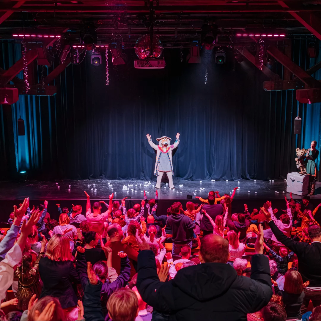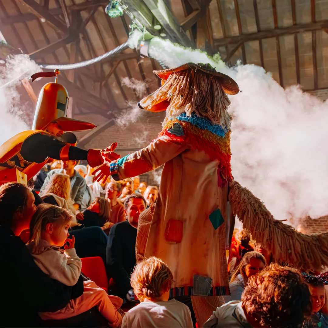 Het is toegestaan om foto’s of video’s te maken tijdens de voorstelling. Na de voorstelling is er een fotomoment voorzien waarbij Ridder Muis en haar vrienden met plezier een foto met jullie nemen.